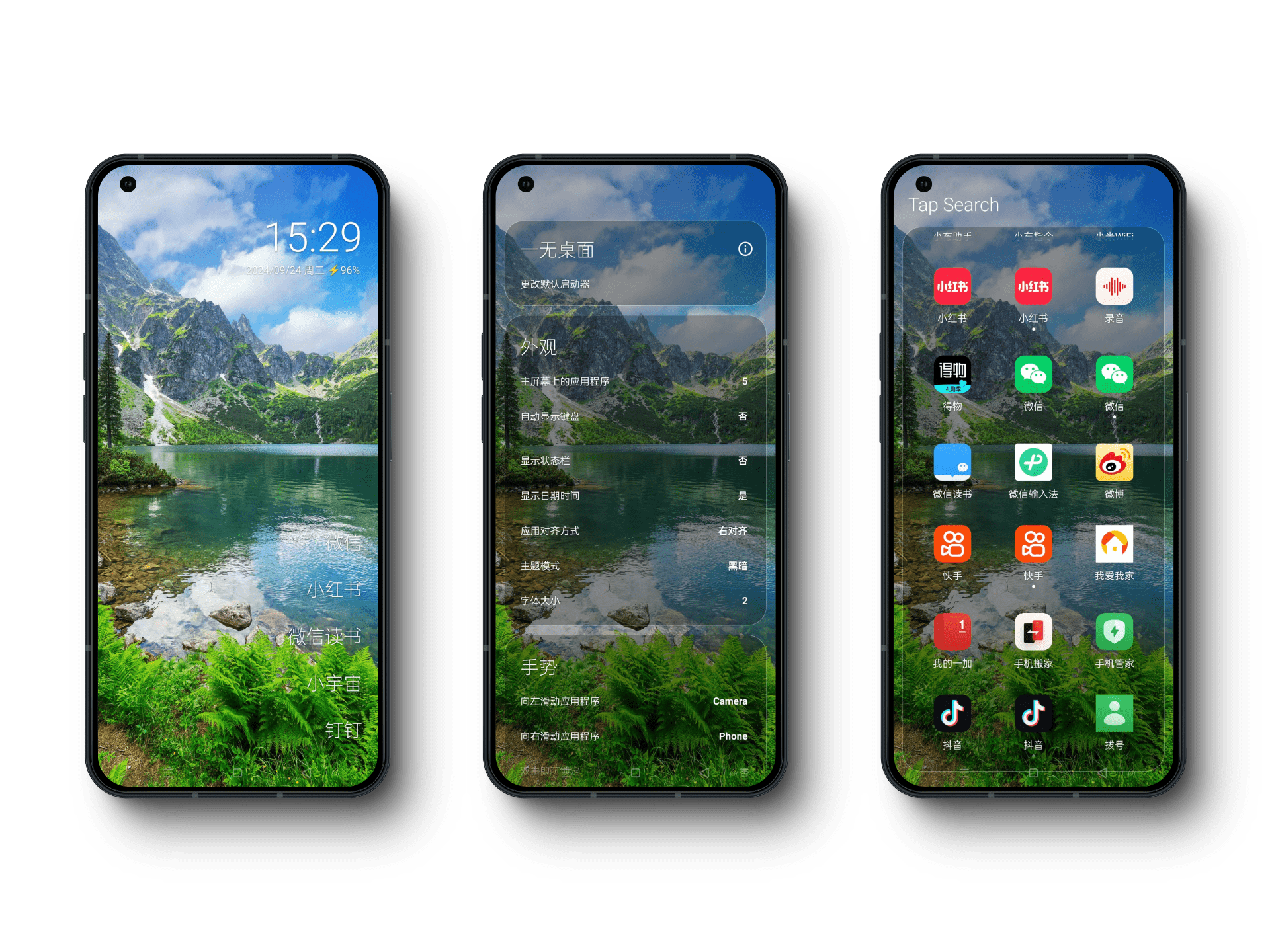 下面是修改后的样式,注意壁纸需要你自己设置啊,壁纸很大程度上影响这个启动器的格调。
