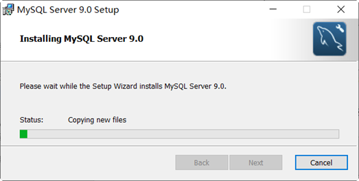 系统自动安装MySQL服务器,并显示安装进度,如图1.9所示。