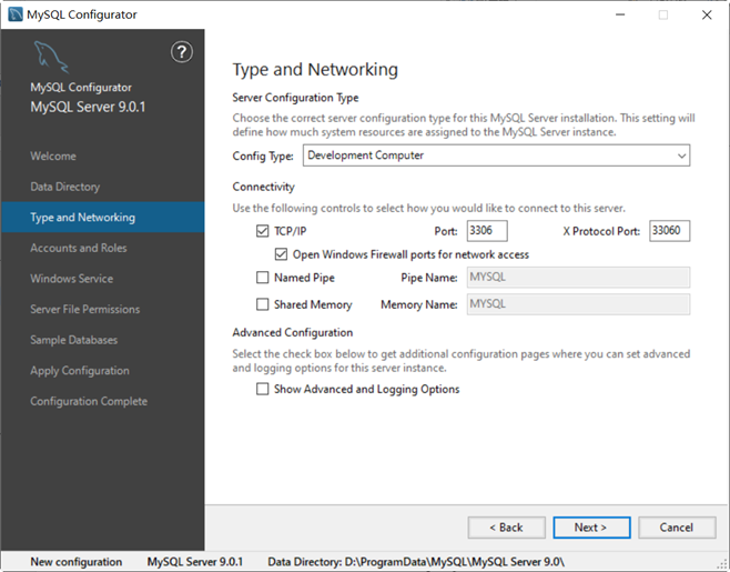 单击【Next】(下一步)按钮,打开MySQL服务器类型配置(Type and Networking)窗口,这里采用默认的设置即可,如图1.13所示。