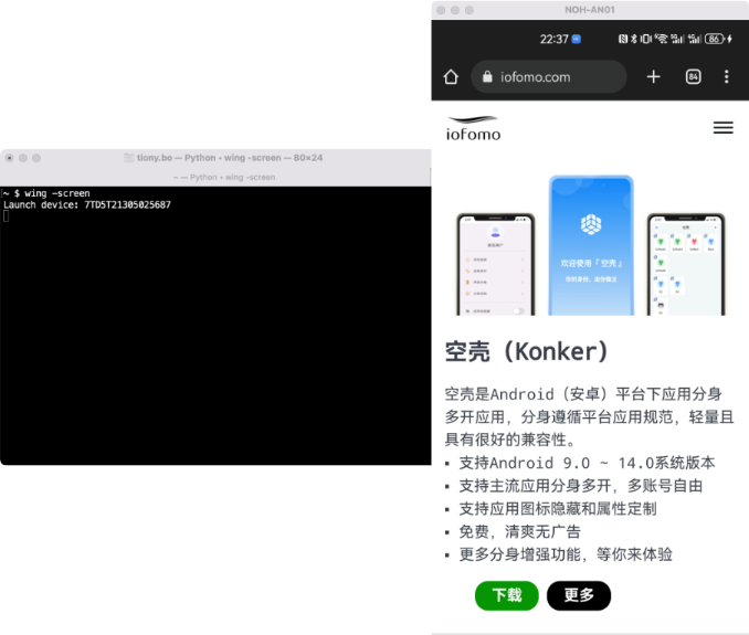 作为Android平台设备投屏插件,根据PC系统平台集成scrcpy或QTScrcpy组件,支持多个设备并行操作。