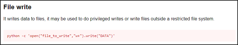 再次利用 GTFObins,我们可以检查python(3) 的 File Write 条目。