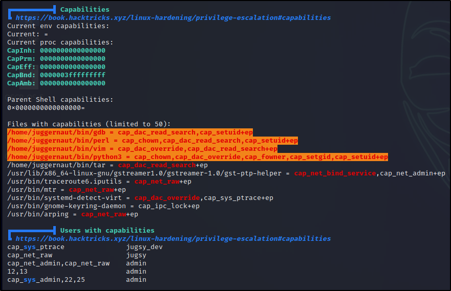 本文通过 Google 翻译 Capabilities – Linux Privilege Escalation - Juggernaut-Sec 这篇文章所产生,本人仅是对机器翻译中部分表达别扭的字词进行了校正及个别注释补充。
