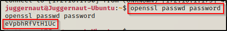 为此,我们必须首先使用 openssl 创建一个散列密码。为简单起见,我们将密码设置为“password”。
