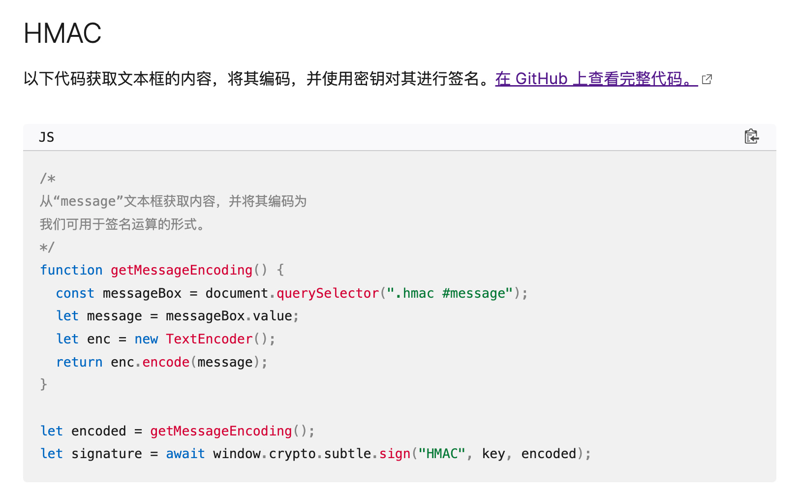 从 HMAC 的例子中,就可以找到我们需要的关键信息: