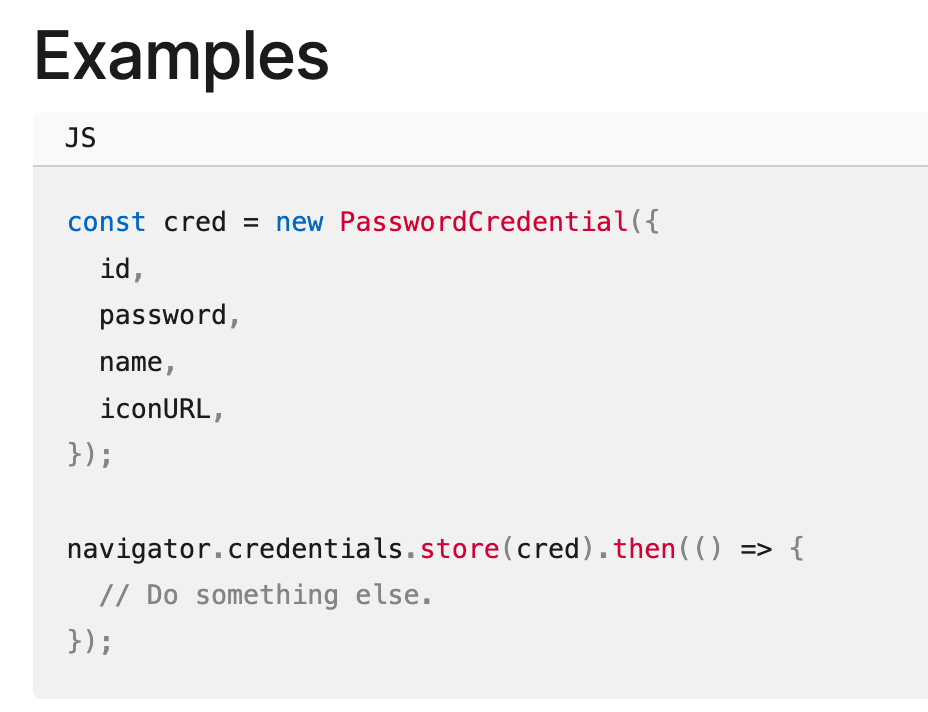 例如 Chrome 中提供的 PasswordCredential 相关API。