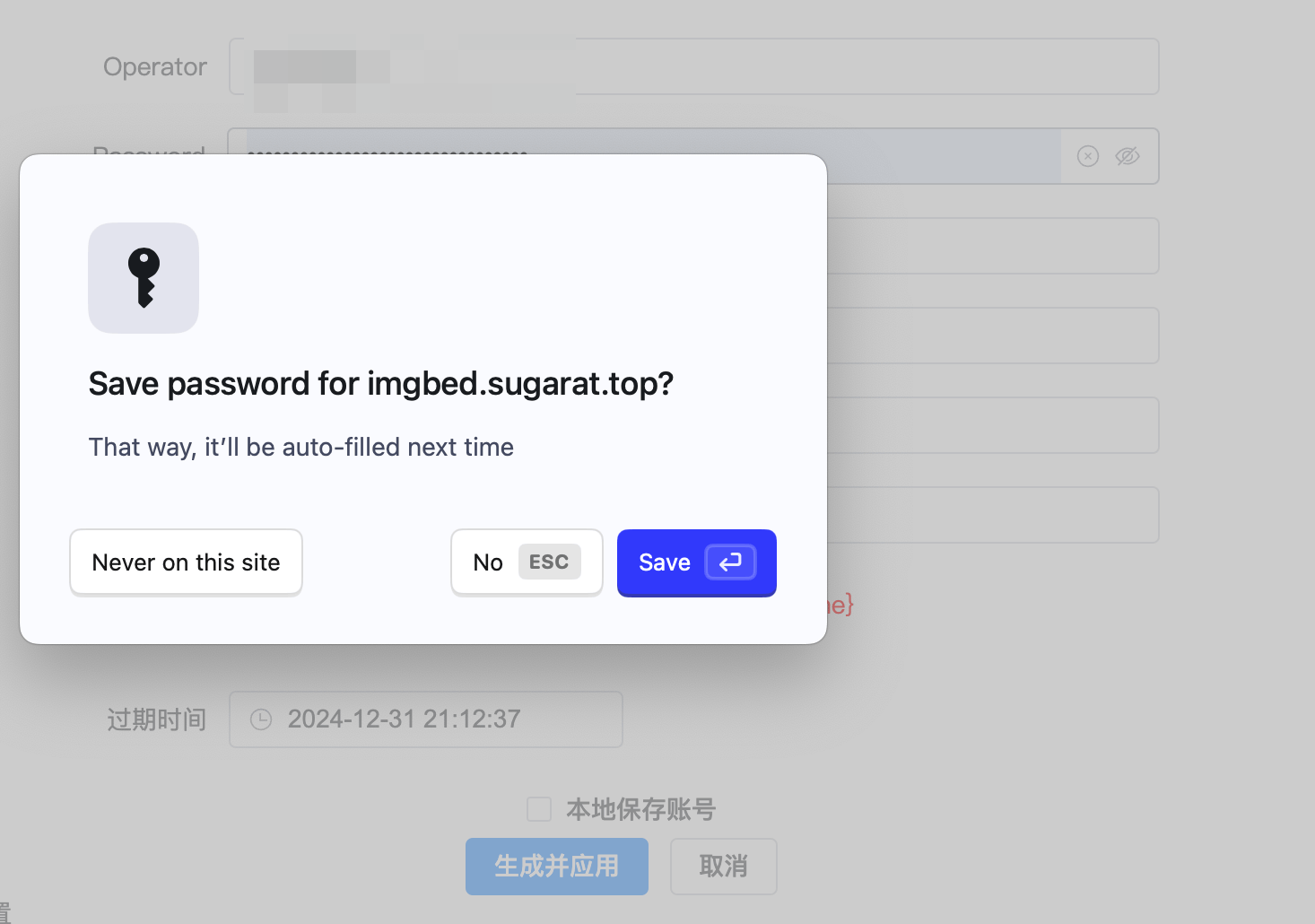 本着尽可能简单,减少对后端依赖的原则,上传令牌是在本地(Node.js)生成并设置一个过期时间,在浏览器中直接粘贴,存放在 LocalStorage 中,过期就在本地重新生成一次就行。