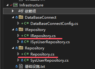 根据以上结构,我们分别创建IRepository.cs仓储接口和Repository.cs仓储接口的实现
