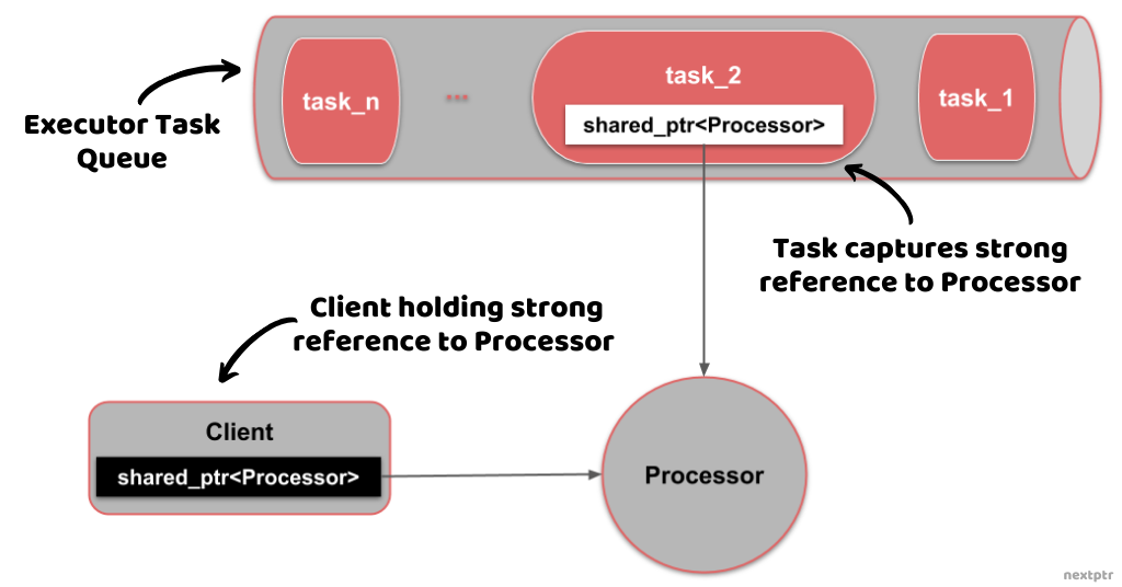 因此,我们需要一个机制能够达到我们的目的(捕获并保留一个指向当前对象本身的 std::shared_ptr<Processor> 实例)。