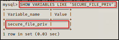 SHOW VARIABLES LIKE 'SECURE_FILE_PRIV';