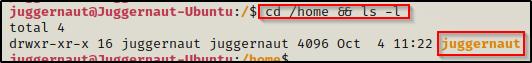 cd /home && ls -l