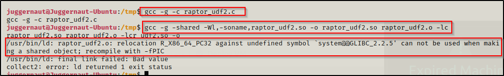 gcc -g -shared -Wl,-soname,raptor_udf2.so -o raptor_udf2.so raptor_udf2.o -lc