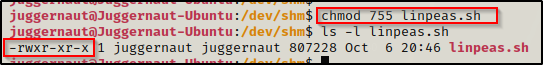 回到受害者,我们需要导航到具有写入权限的文件夹,通常是我们的 home 目录、/tmp 目录或 /dev/shm 目录。我个人喜欢 /dev/shm,因此我们将导航到那里,然后使用以下命令下载 LinPEAS: