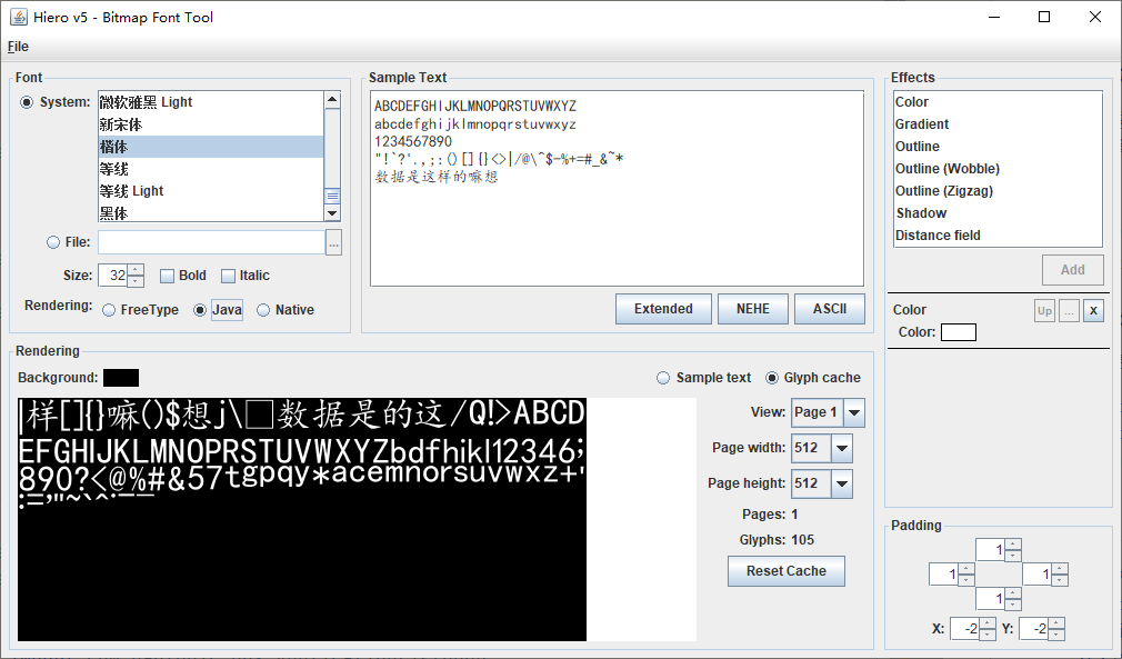 我们需要使用hiero工具生成一个fnt文件(从翻译上来说是一个字体的位图文件,即每个字符都是一个位图)
