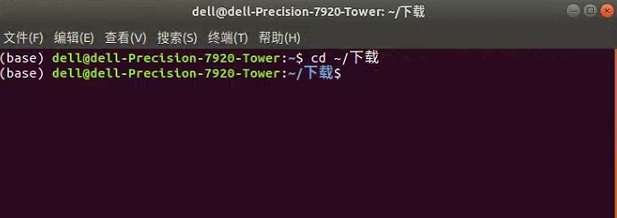 接下来,我们打开终端,首先通过cd方法,进入我们前面的下载路径;如下图所示。