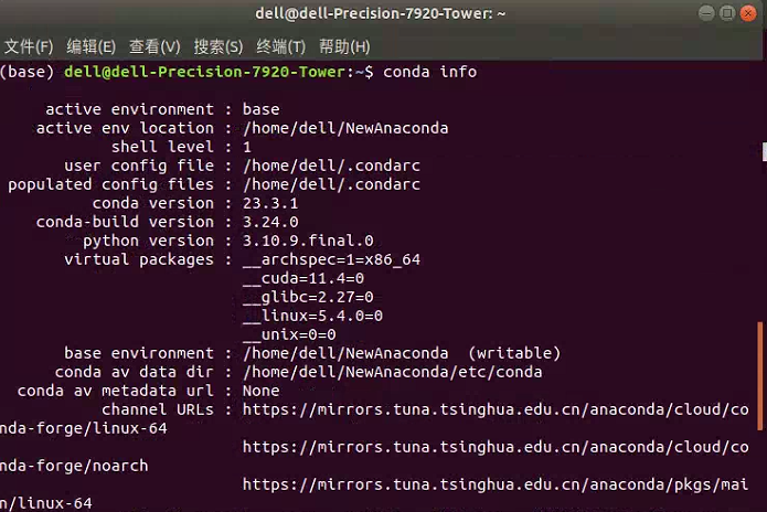 或者通过conda info也同样可以验证Anaconda环境的配置情况,如下图所示。