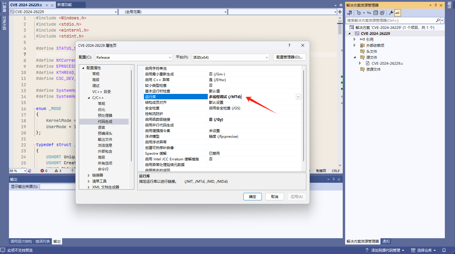 把代码用Visual Studio编译,编译时选择MTd多线程调试