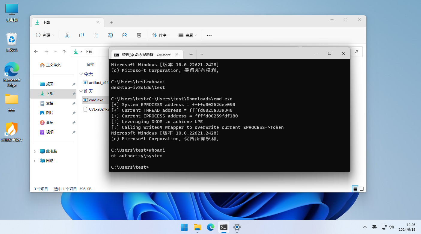 生成后用虚拟机执行,系统版本为Windows 11专业版 22H2(22621.2428),提权成功