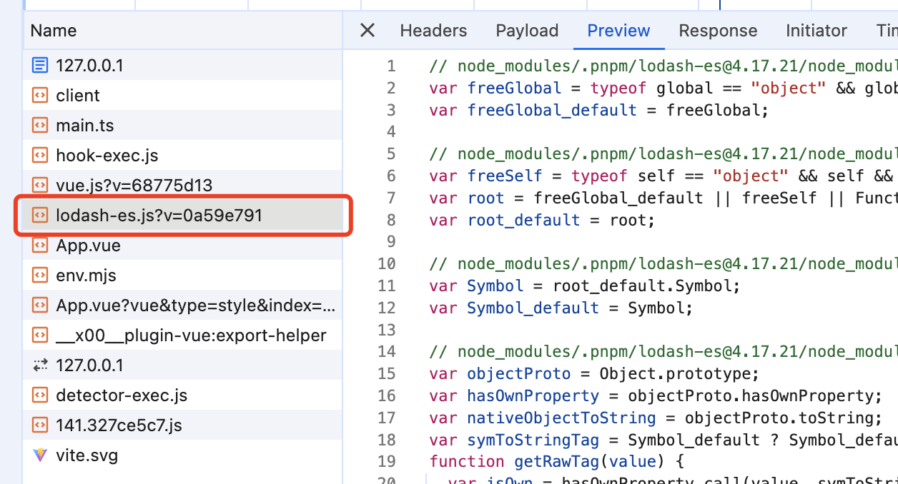 vite通过将 lodash-es 预构建成单个模块,只需要发起一个HTTP请求!可以很大程度地提高加载性能