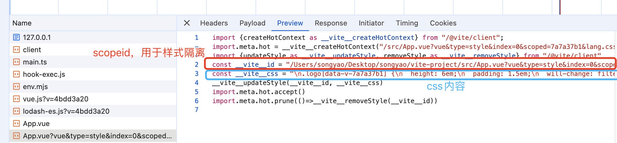 里面有一个脚本文件<script type="module" src="/src/main.ts"></script>,接下来就该请求并处理入口文件main.ts了