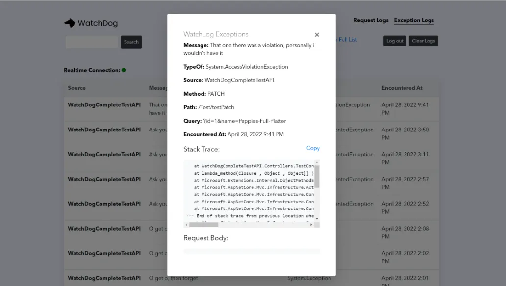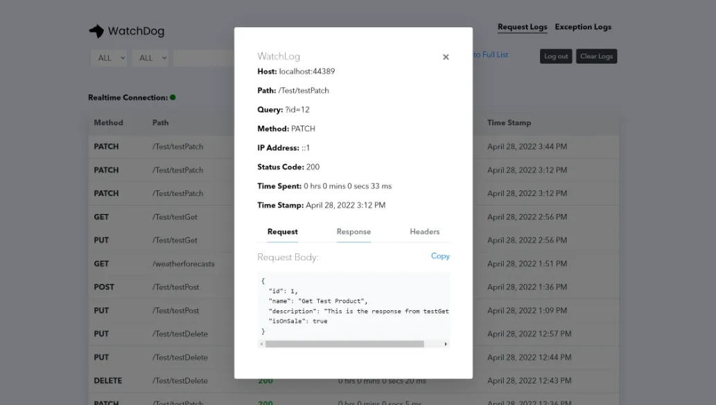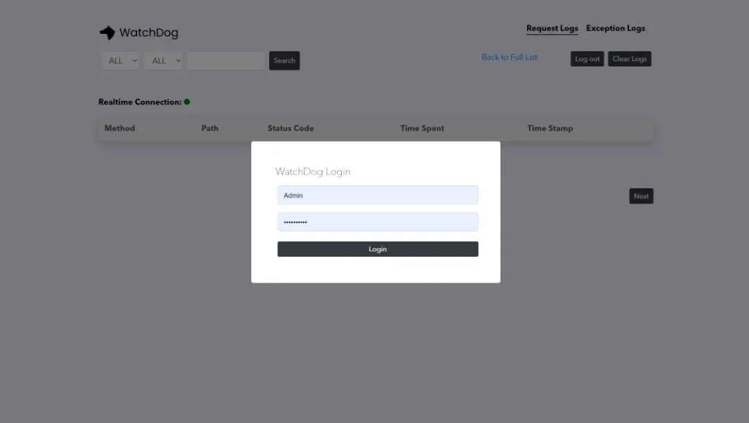 WatchDog是一个开源(MIT License)、免费、针对ASP.Net Core Web应用程序和API的实时应用监控系统。开发者可以实时记录和查看他们的应用程序中的消息、事件、HTTP请求和响应,以及运行时捕获的异常。