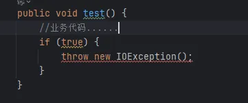 throw关键字用于在方法体内实际抛出一个异常实例。当程序运行到throw语句时,指定的异常会被创建并抛出,立即终止当前方法的执行,并将控制权转移给包含该方法的调用者的异常处理机制。throw来抛出一个异常对象,这个对象可以是系统预定义的异常类的实例,也可以是自定义异常类的实例。throw总是伴随着一个异常实例,且其后的代码不会被执行,因为一旦抛出异常,当前的代码路径就会被中断。throws关键字用于声明方法可能抛出的异常类型,它出现在方法签名之后。这告知调用者该方法执行时可能会遇到的异常情况,要求调用者要么处理这些异常(使用try-catch语句块),要么继续向上层方法抛出这些异常。throws来声明这些异常。这样做可以强制调用者意识到潜在的异常风险并做出相应的处理准备。throws后面可以跟随一个或多个异常类名,用逗号分隔,表示该方法可能抛出多种类型的异常。并且,throws声明并不意味着异常一定会被抛出,它只是声明了一种可能性。如图