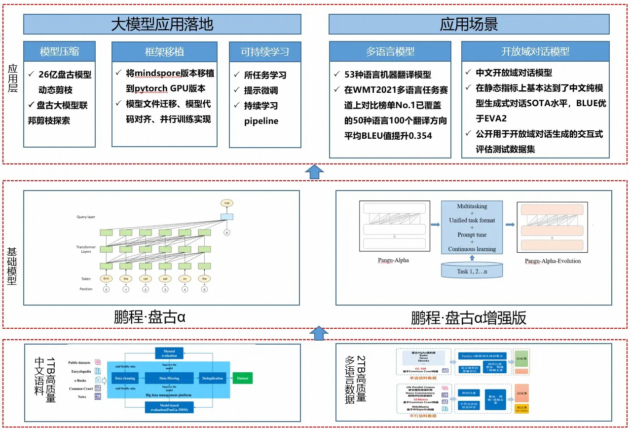 应用层:支持常见的 NLP 应用比如多语言翻译、开放域对话等,支持预训练模型落地工具,包括模型压缩、框架移植、可持续学习,助力大模型快速落地。
