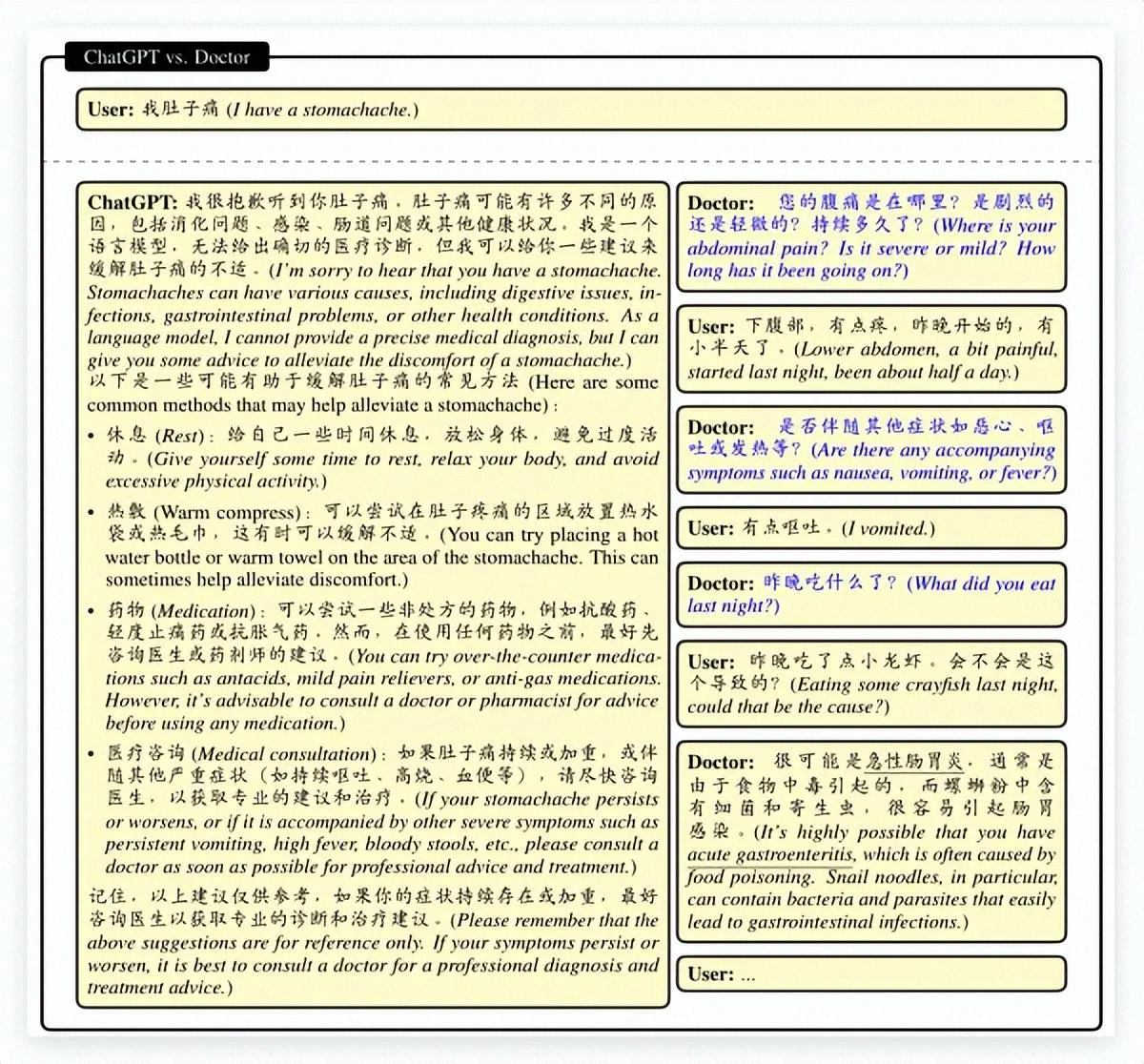 HuatuoGPT 致力于通过融合 ChatGPT 生成的 “蒸馏数据” 和真实世界医生回复的数据,以使语言模型具备像医生一样的诊断能力和提供有用信息的能力,同时保持对用户流畅的交互和内容的丰富性,对话更加丝滑。