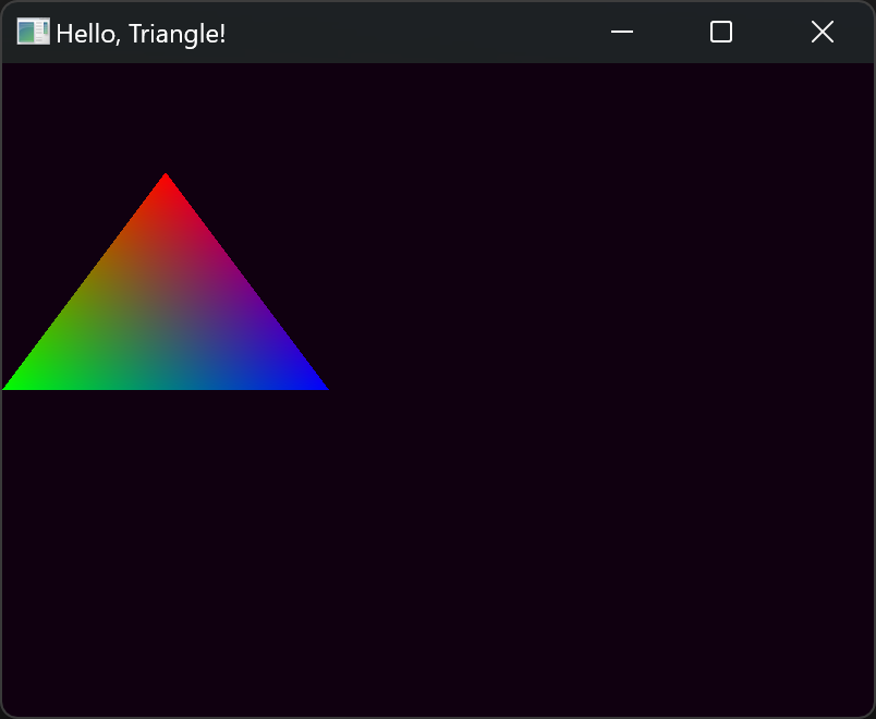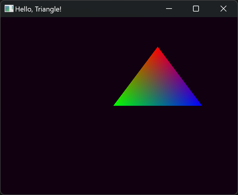 注意上面的顶点定义,坐标虽然是浮点数但表示的是像素值,颜色则做了归一化(取值范围 0.0~1.0)这一点和 SDL2 不同,SDL2 中颜色取值范围是 0~255.