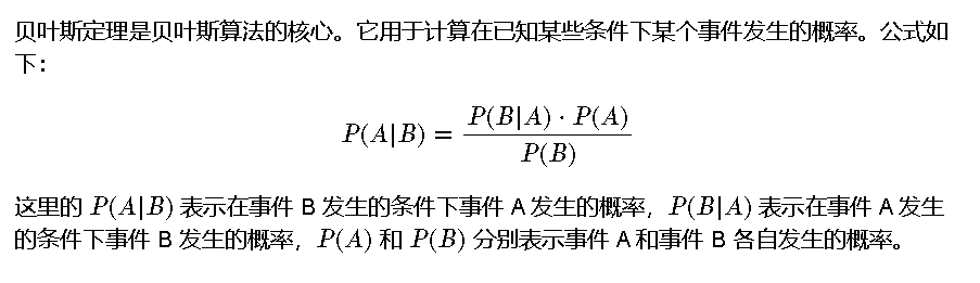 贝叶斯算法在自然语言处理(NLP)中具有广泛应用。朴素贝叶斯分类器常用于文本分类任务,如垃圾邮件检测和情感分析。它通过计算词语在不同类别中的条件概率来进行分类。