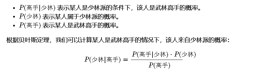为了更好地理解贝叶斯定理,我们可以用一个例子来说明。假设我们有一组关于江湖门派的武林高手的信息: