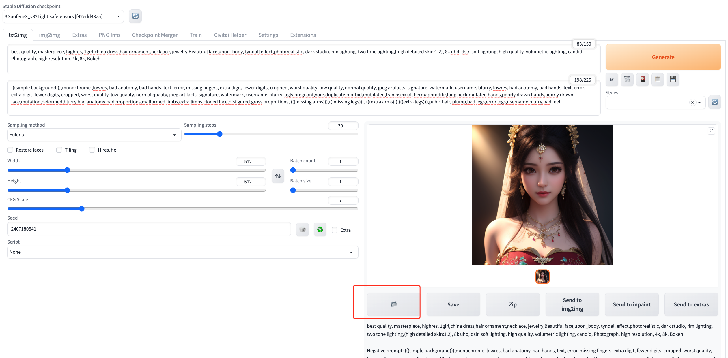 在 Web UI 中,选择 Extra 选项卡,然后将刚刚生成的图片上传。