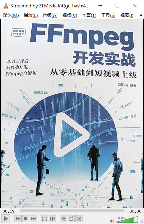 然后启动电脑上的流媒体播放器VLC media player,打开网络串流“rtmp://127.0.0.1:1935/stream”,此时VLC media player的视频播放界面如下图所示。