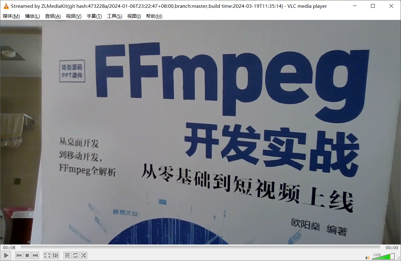首先启动云服务上的流媒体服务器SRS或者ZLMediaKit,在云服务器上部署和启动SRS或者ZLMediaKit比较麻烦,三言两语说不清楚。如果大家想弄明白如何在云服务器上操作SRS或者ZLMediaKit,可在京东自营购买《FFmpeg开发实战:从零基础到短视频上线》一书,联系作者咨询这两个流媒体服务器在云服务器上的详细运行过程。