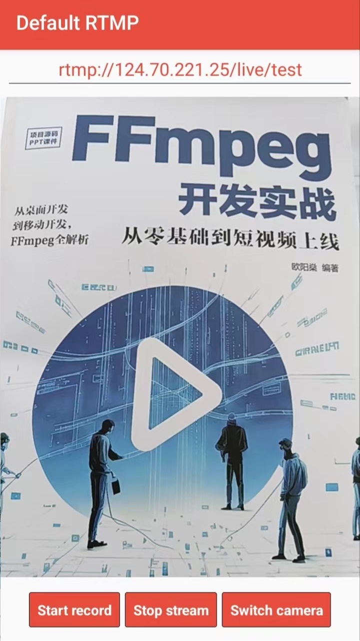 接着启动手机上的直播录制软件RTMP Streamer,具体的操作步骤详见之前的文章《使用RTMP Streamer开启APP直播推流》。之后让RTMP Streamer对SRS或者ZLMediaKit的rtmp地址“rtmp://124.xxx.xxx.xxx/live/test”推流,推流过程的RTMP Streamer录制界面如下图所示。