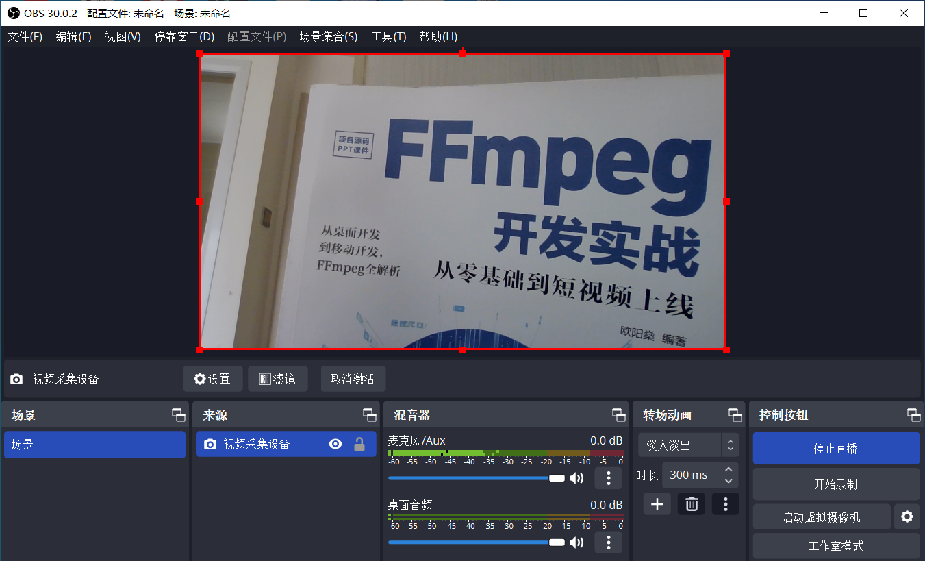 接着启动电脑上的直播录制软件OBS Studio,具体的操作步骤详见之前的文章《使用OBS Studio开启RTMP直播推流》。之后让OBS Studio对MediaMTX的rtmp地址“rtmp://127.0.0.1:1935/stream”推流,推流过程的OBS Studio录制界面如下图所示。