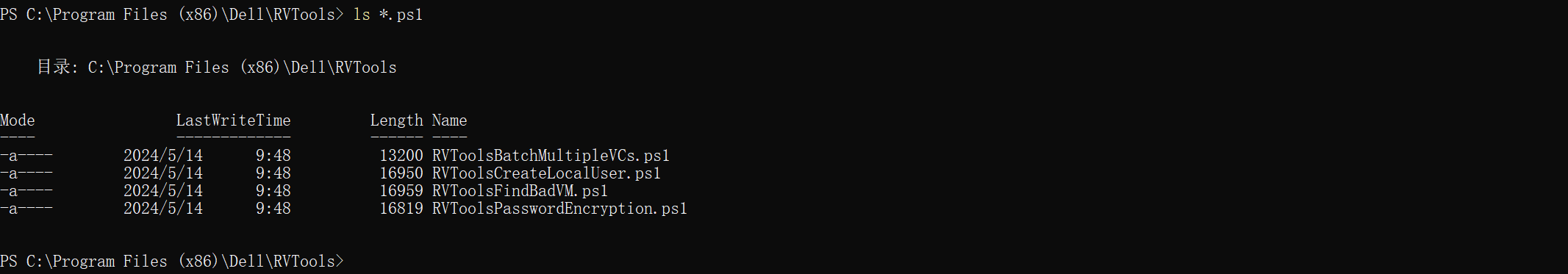 下面内容表示设置环境中 RVTools 的安装路径,如果自定义安装在其他目录,则需要在“$RVToolsPath” 后面改成自行设置的目录。