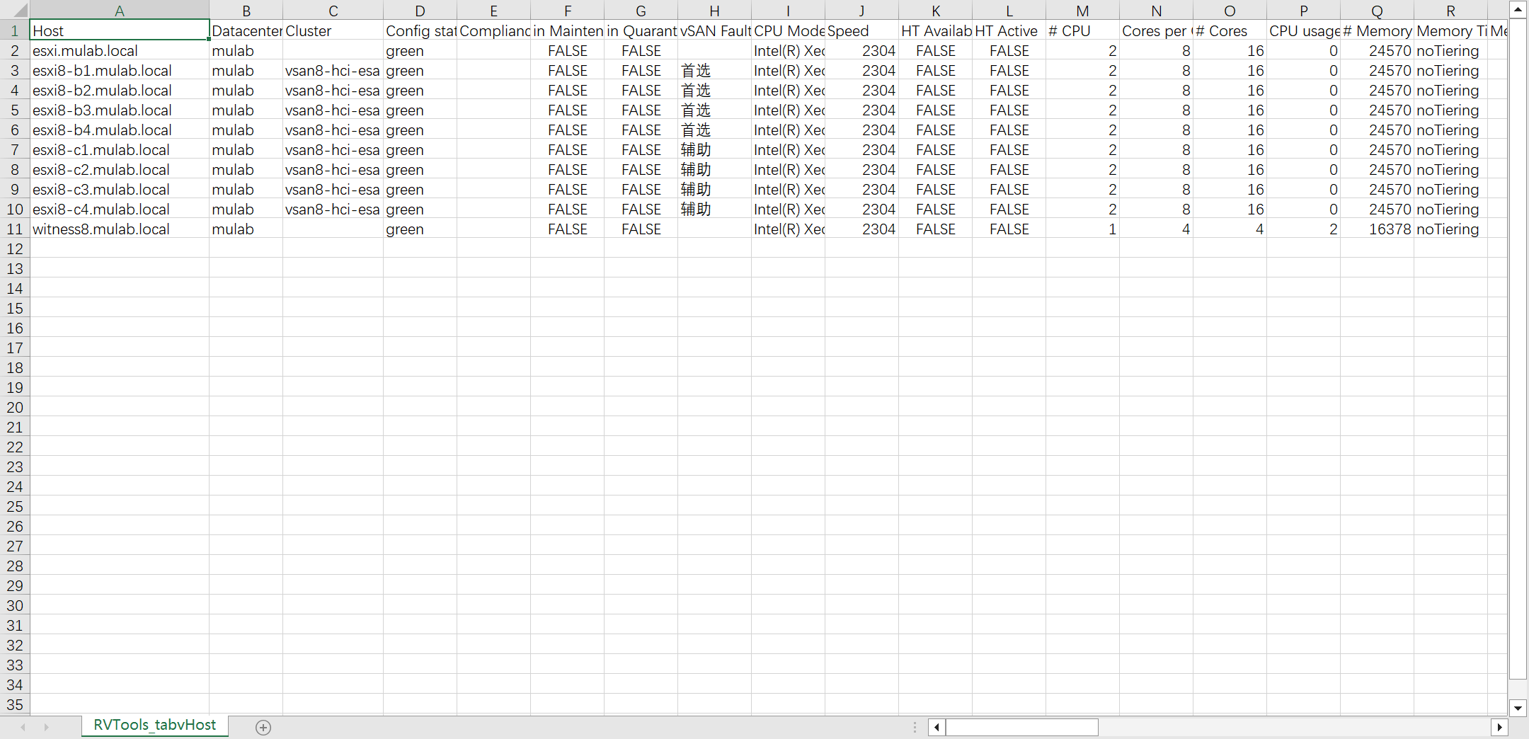 运行 RVTools 命令使用 ExportAll2csv 导出选项将所有选项卡以 CSV 格式导出到指定目录。
