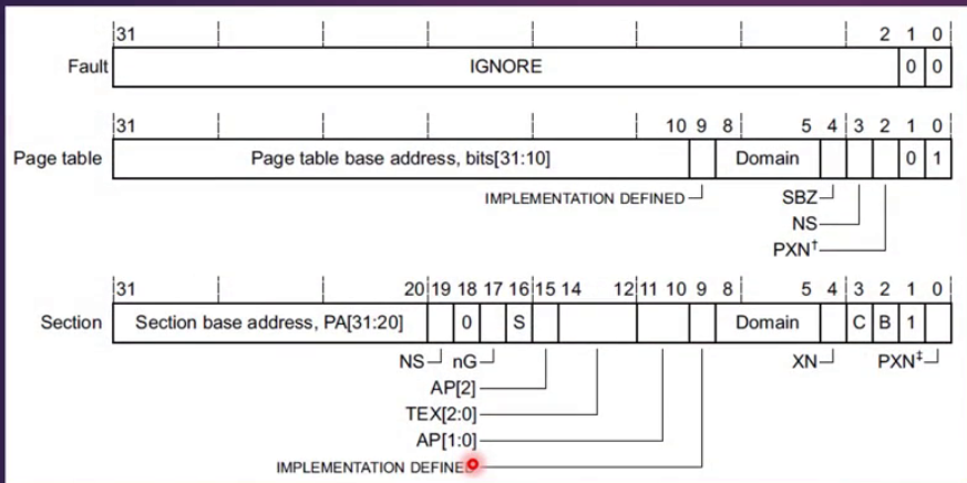 bit 0 ~ bit 1:用来表示这个页表项是一级页表还是段映射的表项。