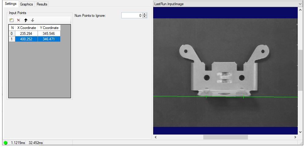 你可以指定FitLine 工具忽略所提供的部分点。在丢弃允许工具忽略的点数后,工具会尝试使用您提供的点的每个可能组合来拟合线。此工具会丢弃边远点以使用其余点拟合最佳可能的线。