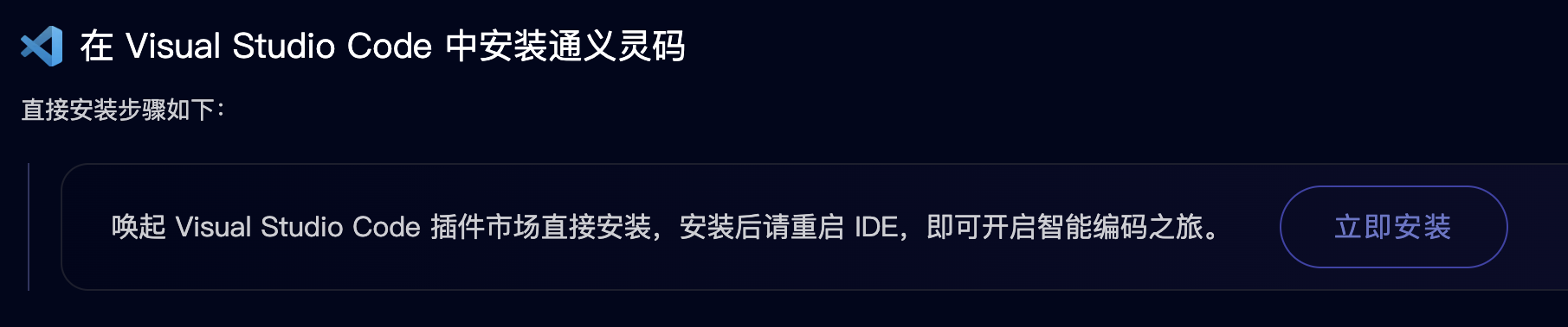 6)点击页面中的 立即安装 按钮,唤起 Visual Studio Code 插件市场安装,或者自己在插件市场搜索 Lingma 并安装