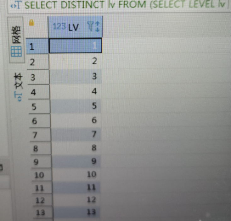 2、了解到整体的数据是13层,然后使用self join 将不同层级的数据关联起来。