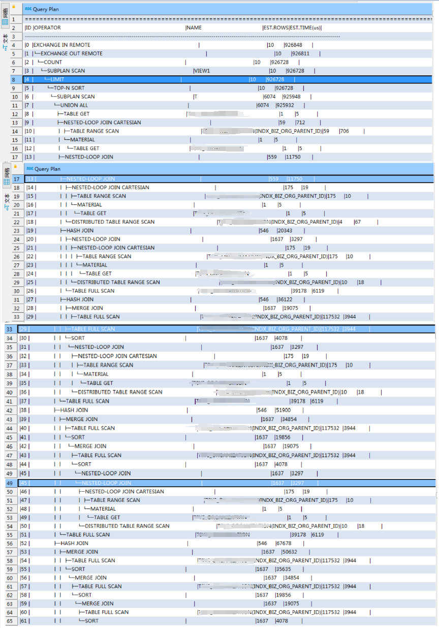 原来18行的SQL改成了250多行后才优化了1秒的执行时间,实在没其他办法了,希望OB产研后续能CBO算子继续优化下。