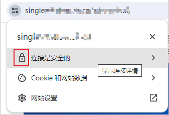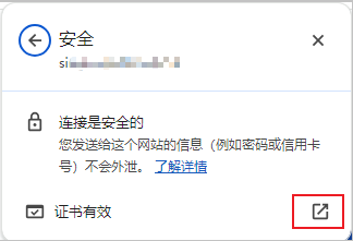 使用浏览器打开被测地址,点击地址栏左侧的小锁图标。不同浏览器显示的样式可能不一样,建议使用Chrome
