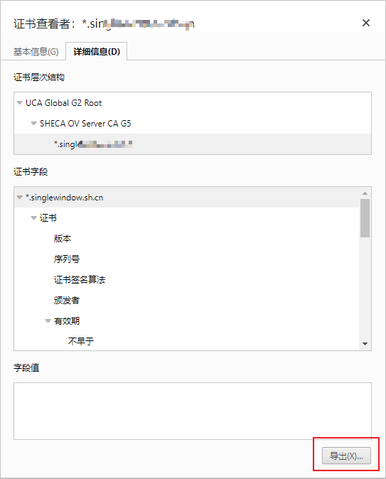 singlewindow.der:浏览器导出的证书