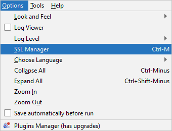 打开Jmeter工具,在Options/SSL Manager中刚刚重新生成的证书。然后运行配置好的HTTPS接口请求,需要输入