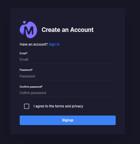 在浏览器中导航到应用程序。您应该看到登录、注册和密码找回页面。