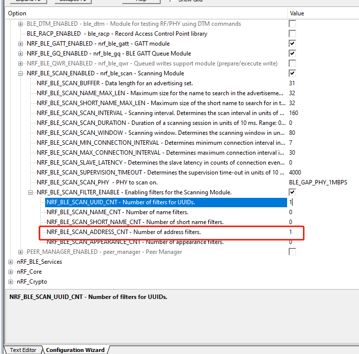 err_code = nrf_ble_scan_filters_enable(&m_scan, NRF_BLE_SCAN_ADDR_FILTER, false);