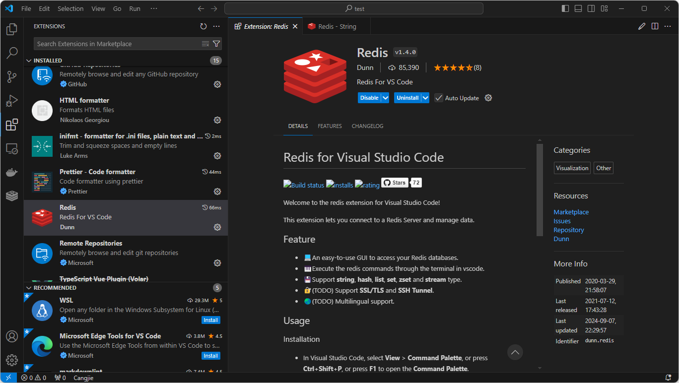 该工具可以让你在 VS Code 中直接连接和管理 Redis 数据库。它支持查看和编辑键值对,执行 Redis 命令,和监控 Redis 实例。